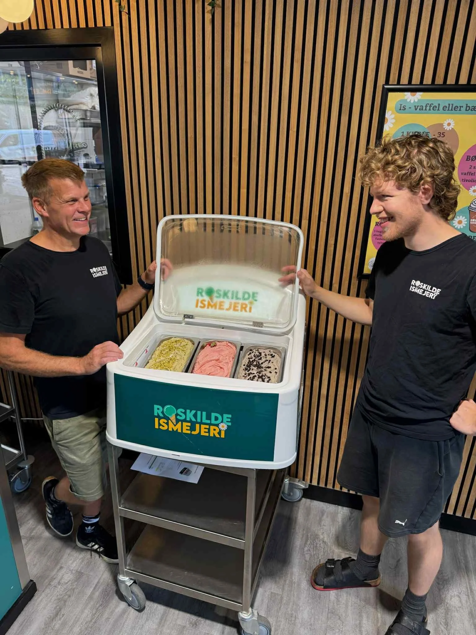 At vores is fremstilles lokalt i iscaféen på Algade i Roskilde – lavet på økologisk jerseymælk fra Thise og økologisk rørsukker?