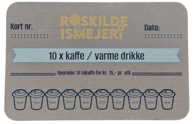 Vores klippekort er oldschool på den gode måde. Du køber dem i butikkerne og bruger dem, når is- eller kaffelysten melder sig. Vi tilbyder følgende: